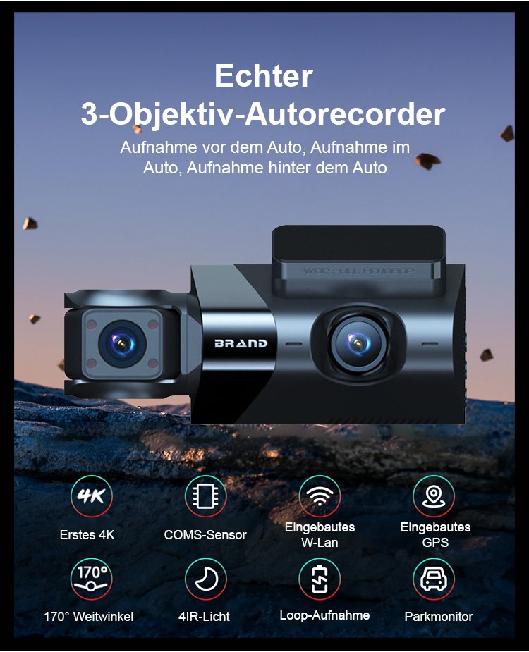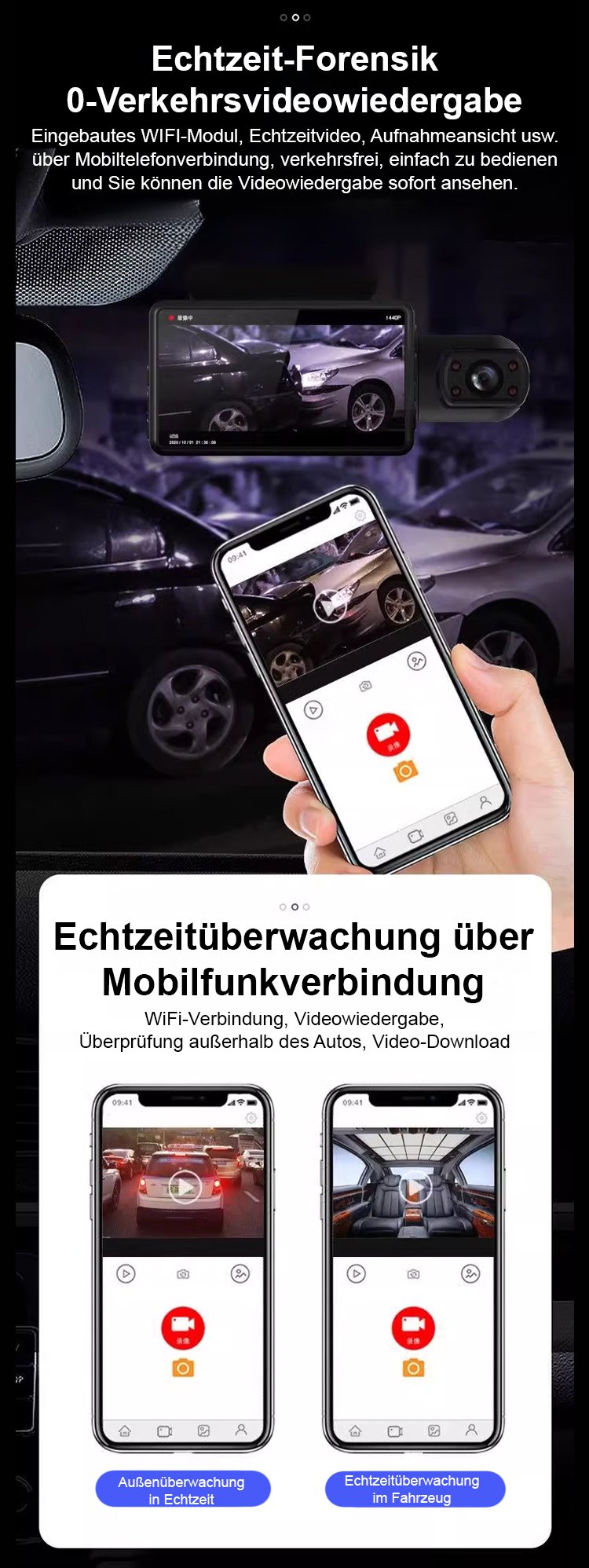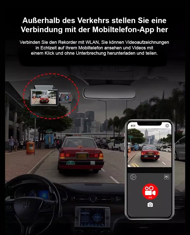 HD-Wifi-Auto-Recorder mit drei Aufzeichnungen